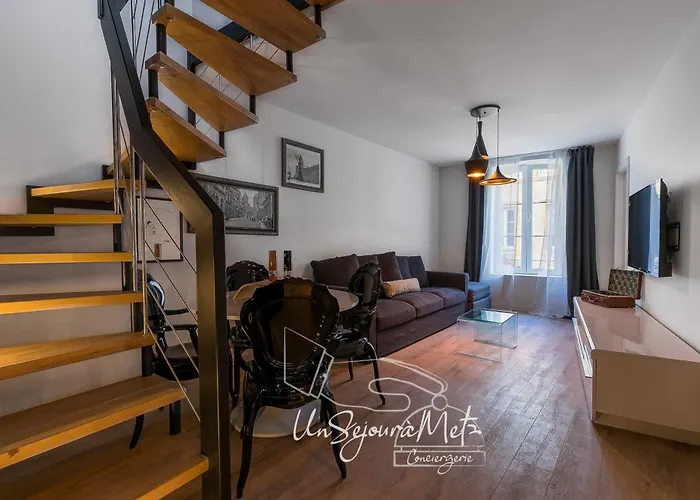 Апартаменты находятся в 2 км от Меца Ботанического сад, а также в 1 км от Центра Помпиду-Метц, к тому же, неподалеку расположился Музей Musee de la Cour d'Or. Центр Меца находится всего в 1 км от апартаментов.
